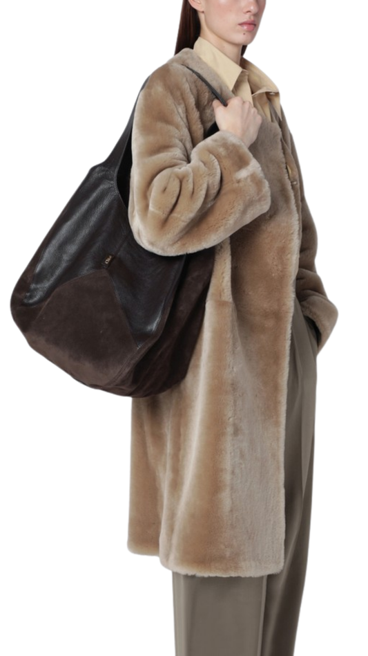 Balloon Bag in Brown Grained & Suede Leather