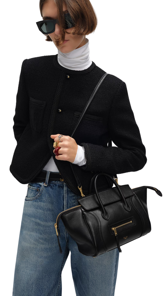 Small New Luggage In Black Supple Shiny Lambskin