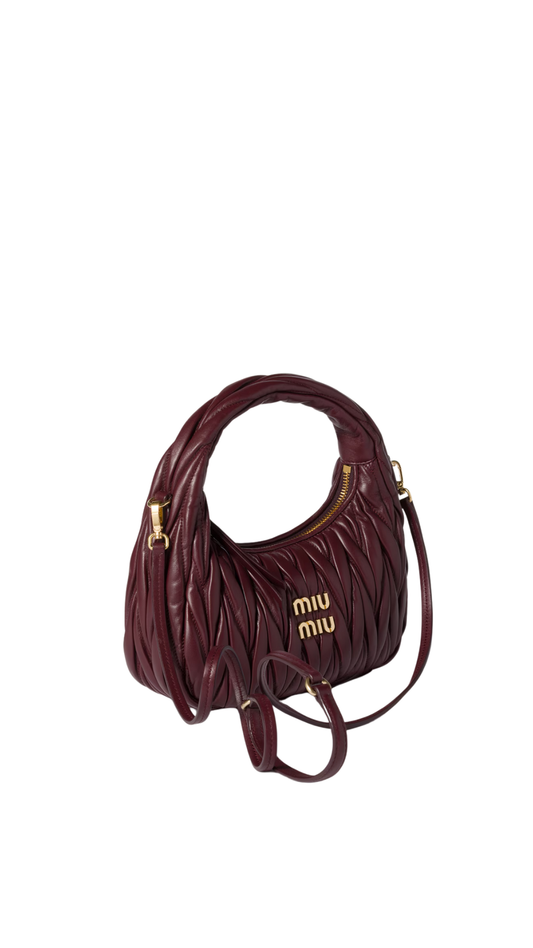 Wander Matelassé Nappa Leather Hobo Bag in Burgundy