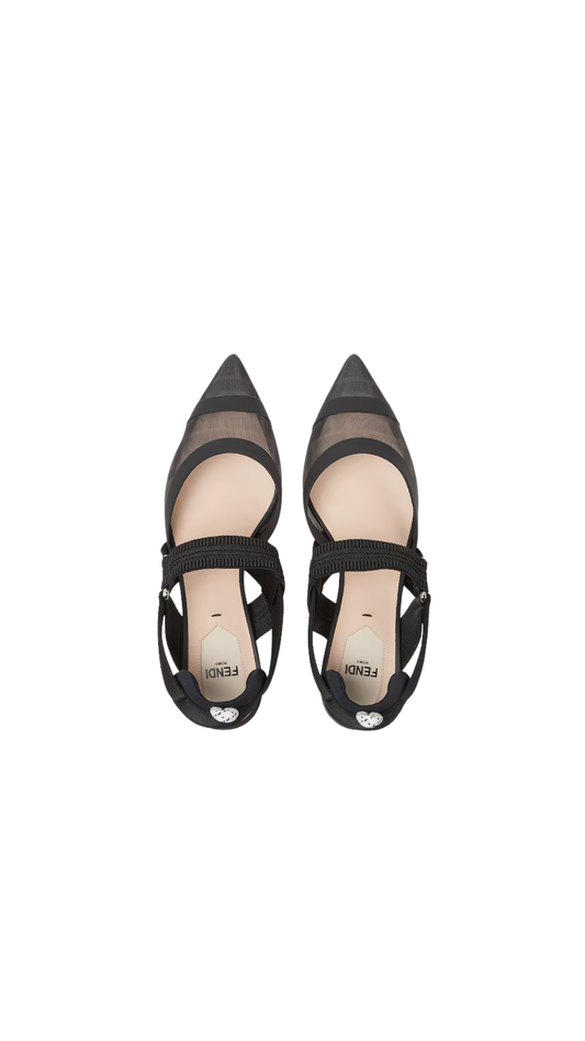 Colibrì in Black Leather and Mesh Slingbacks with Medium Heel