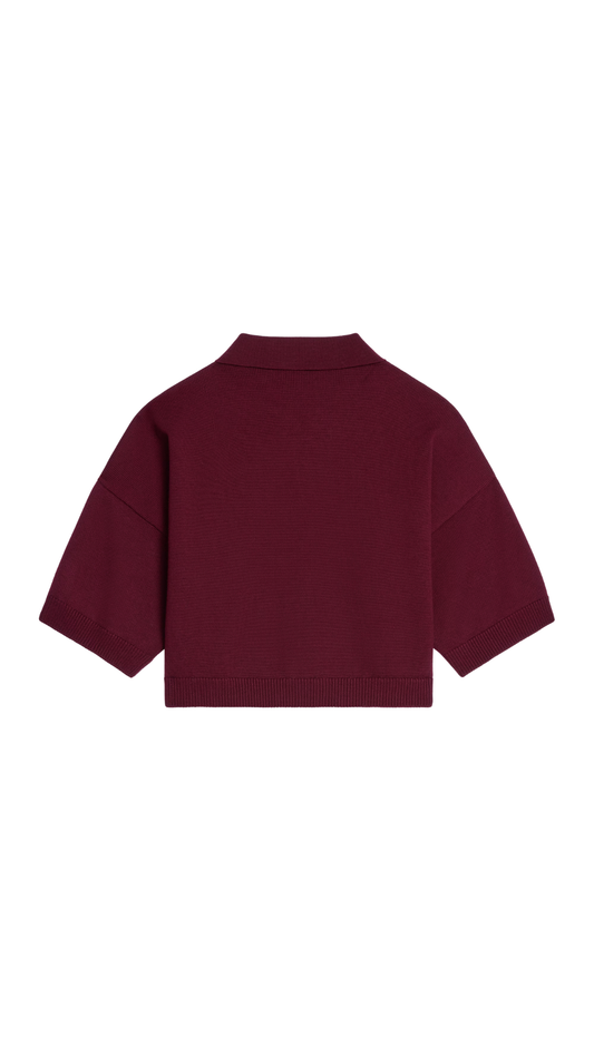 Cropped Polo in Burgundy Wool