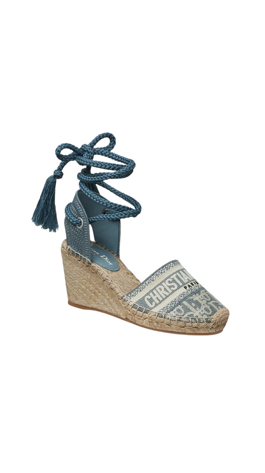 Dior Granville Wedge Espadrille in Chambray Blue and Ecru
