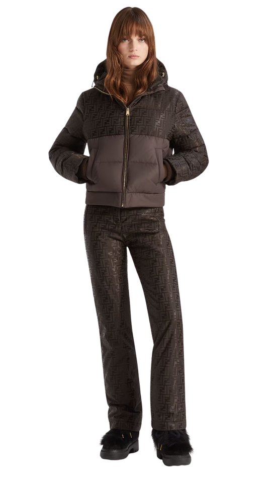 Puffer Jacket in Brown FF Nylon Puffer Jacket