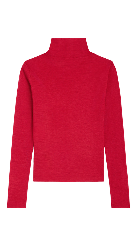 Turtleneck Top In Rouge Cerise/Navy Wool Jersey