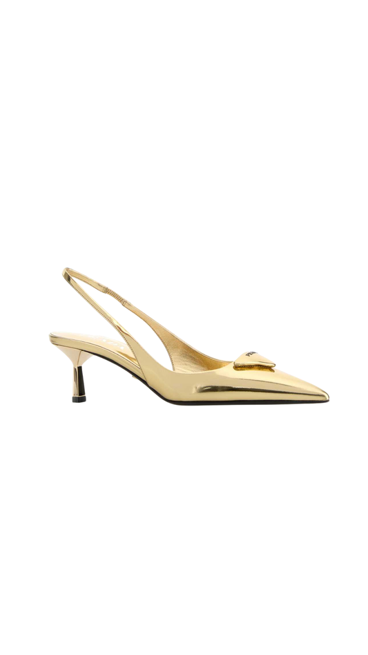 Patent Leather in Gold Slingback Pumps