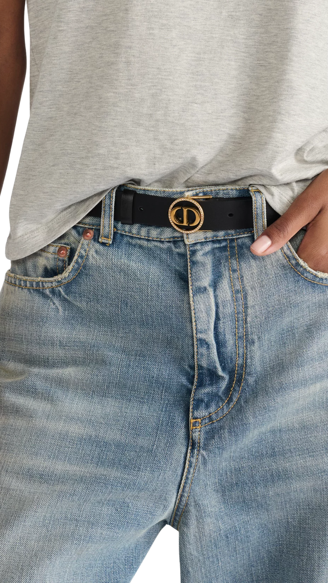 30 Montaigne Circled Belt in Black Smooth Calfskin and Silver-Tone Crystals