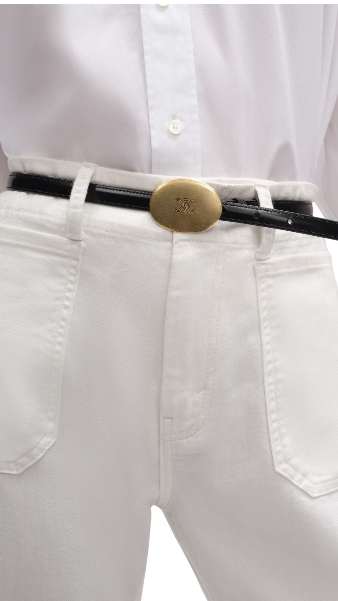 Thin Plate Belt 13MM in Black Taurillon Leather
